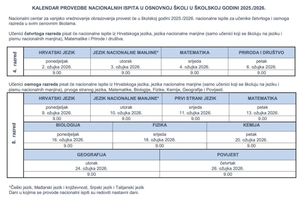 Kliknite na donju sliku za više informacija o rasporedu održavanja nastave za vrijeme nacionalnih ispita
