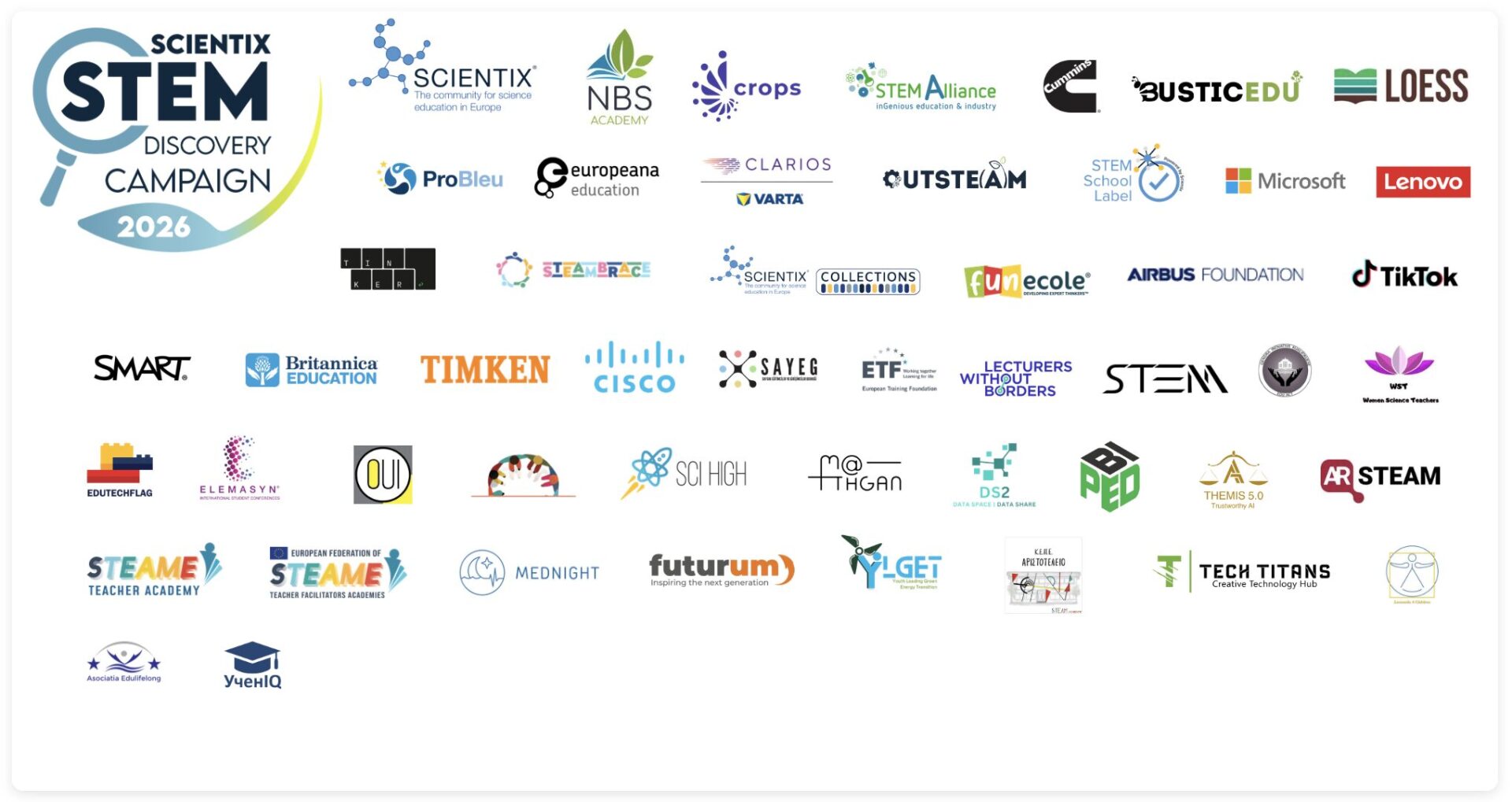 Međunarodna inicijativu Scientix STEM Discovery Campaign 2026, suorganiziraju Scientix i projekt NBS Academy. Kampanja okuplja učitelje, škole, organizacije, knjižnice, sveučilišta, omladinske klubove i sve dionike zainteresirane za promicanje STEM područja – znanosti, tehnologije, inženjerstva i matematike.