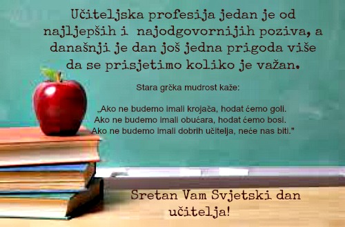 Svim odgojno-obrazovnim radnicima čestitamo Svjetski dan učitelja!