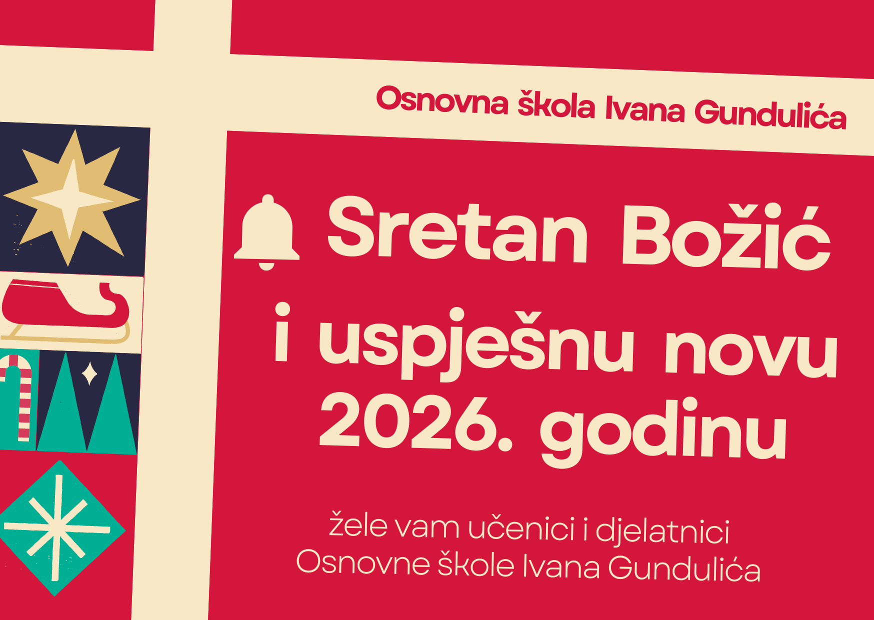U ime svih djelatnika Osnovne škole Ivana Gundulića i u svoje osobno ime želimo svima ugodan zimski odmor, puno mira, radosti i zajedništva, te da nova 2026. godina donese zdravlje, uspjeh i ispunjenje želja.